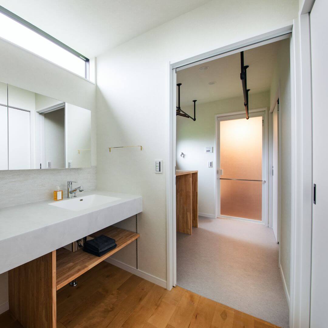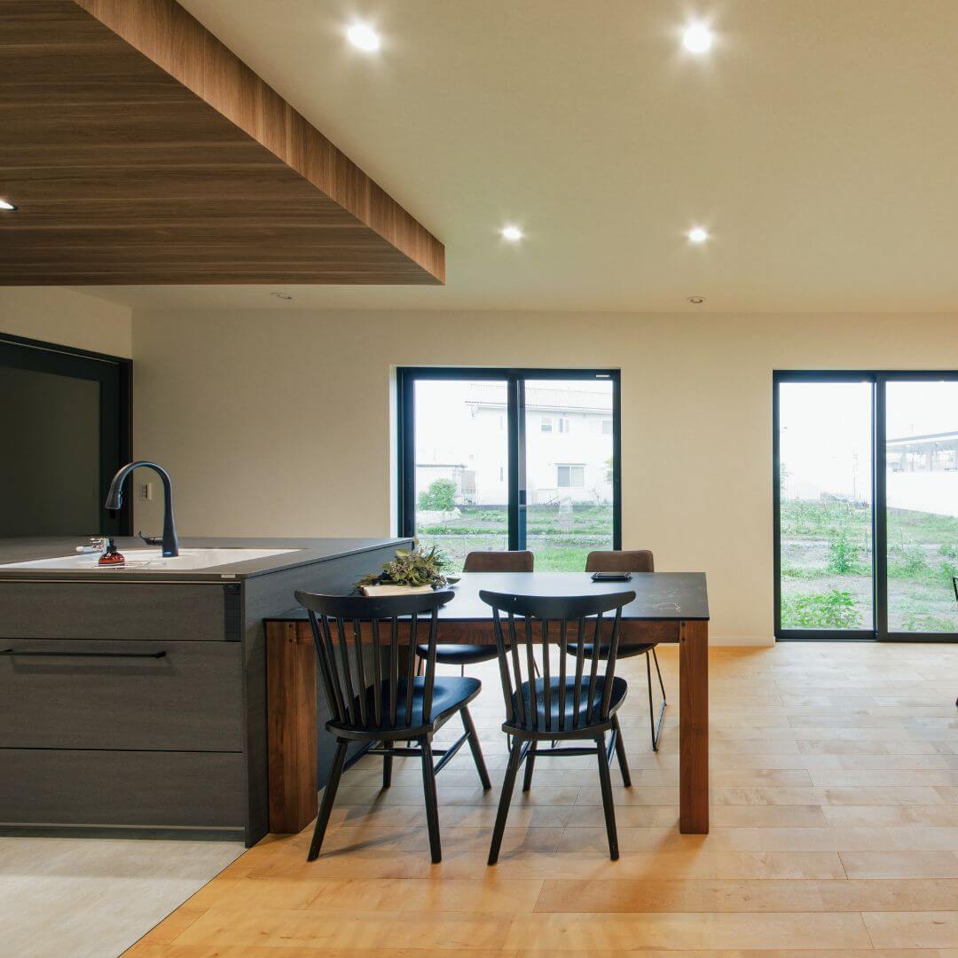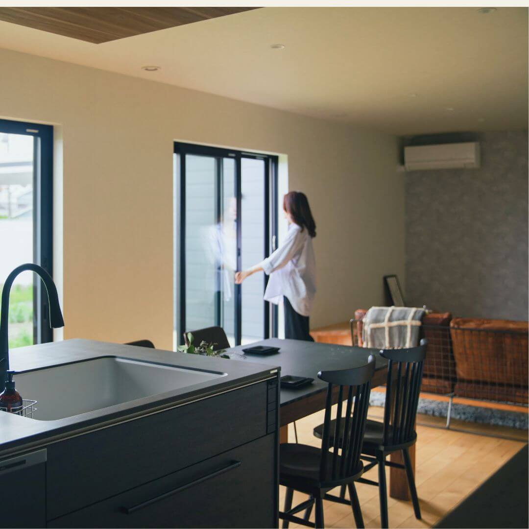 - この家は、「動かなくていい暮らし」と「気持ちよく過ごせる空間」を大事にしています。 中庭からの開放感を楽しみながら、忙しい毎日の中でも、自然と心が落ち着く住まいが完成しました!