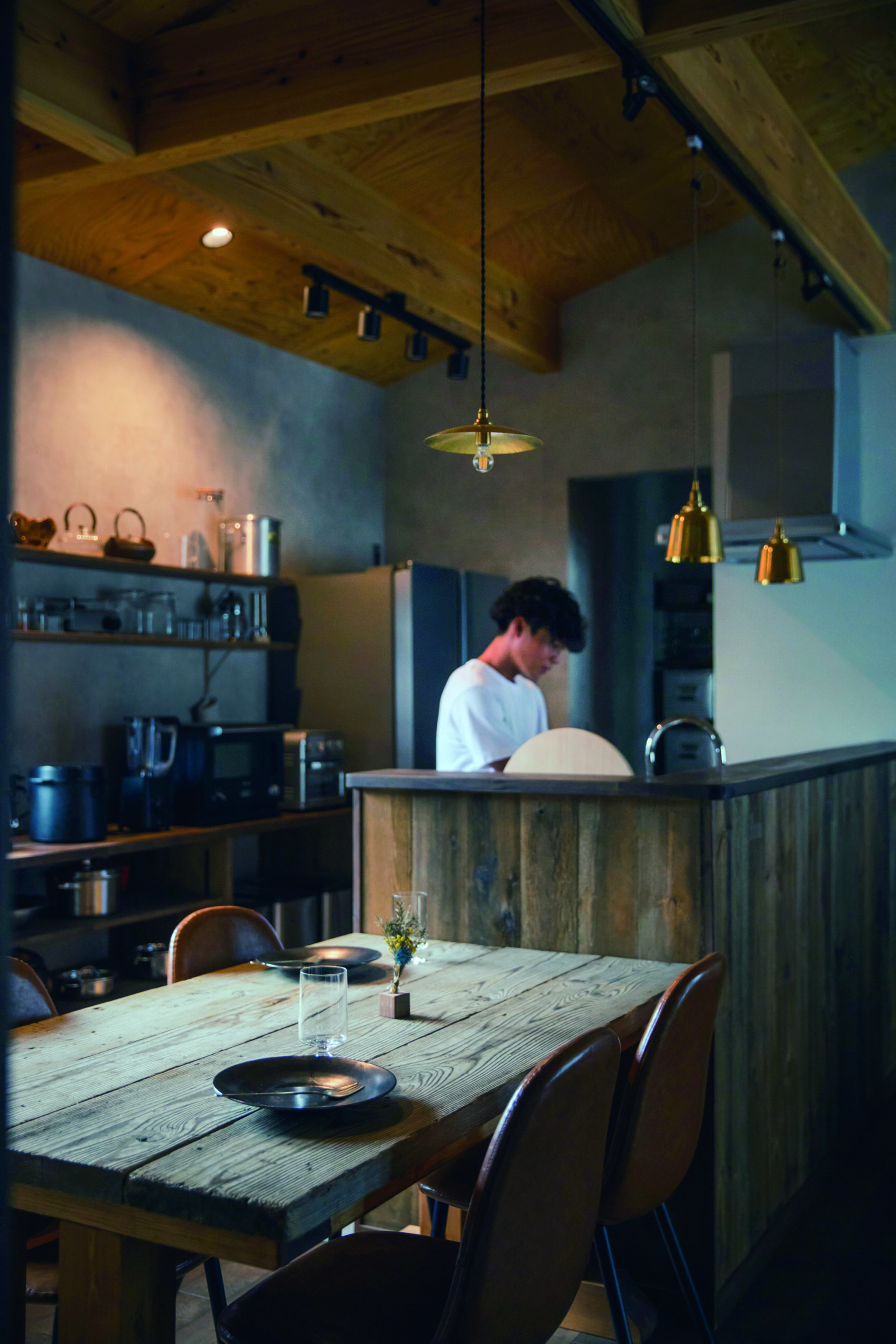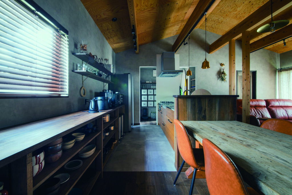◆古材を使った造作キッチンカウンターはまるでカフェにいるような雰囲気に★