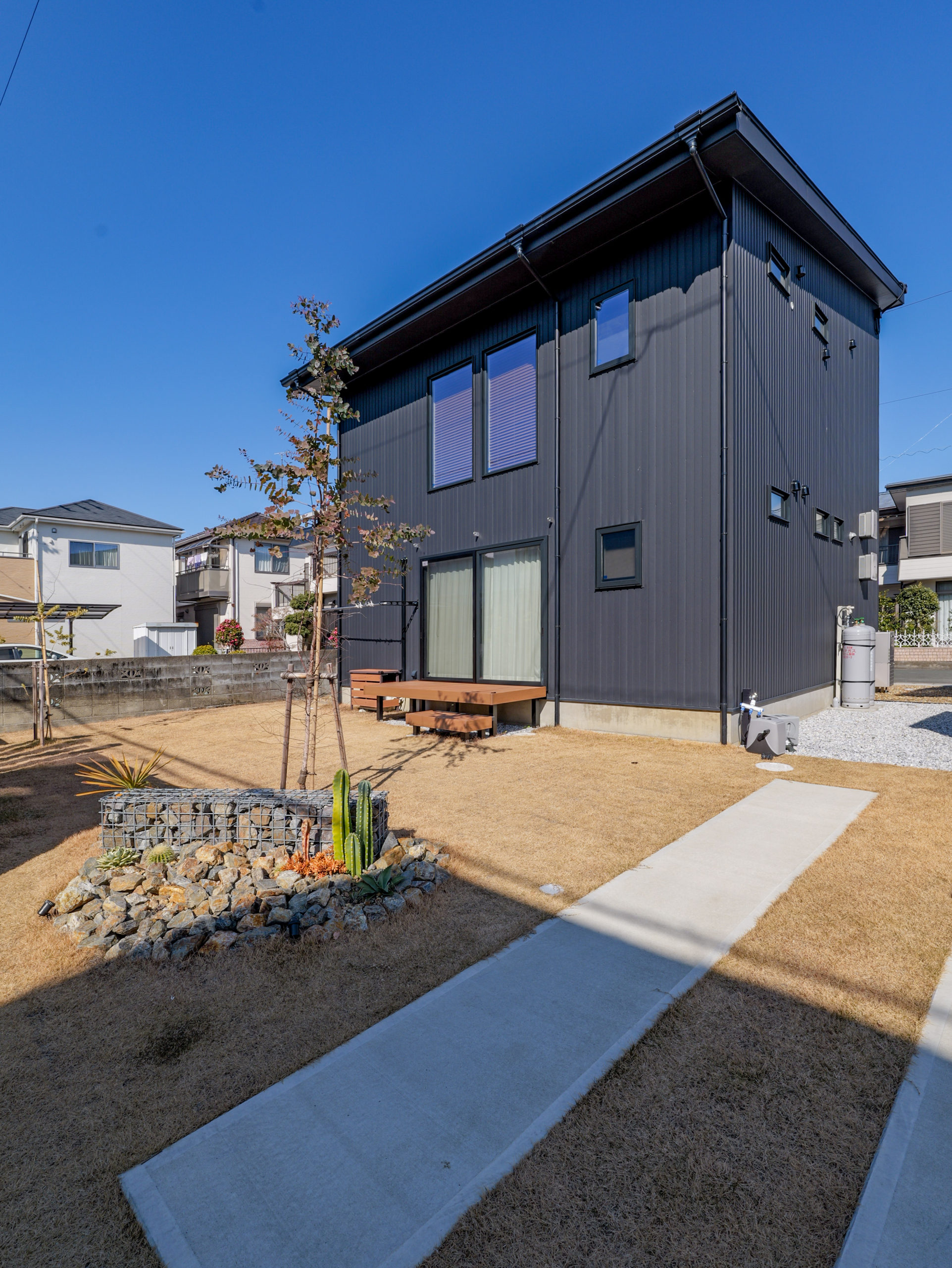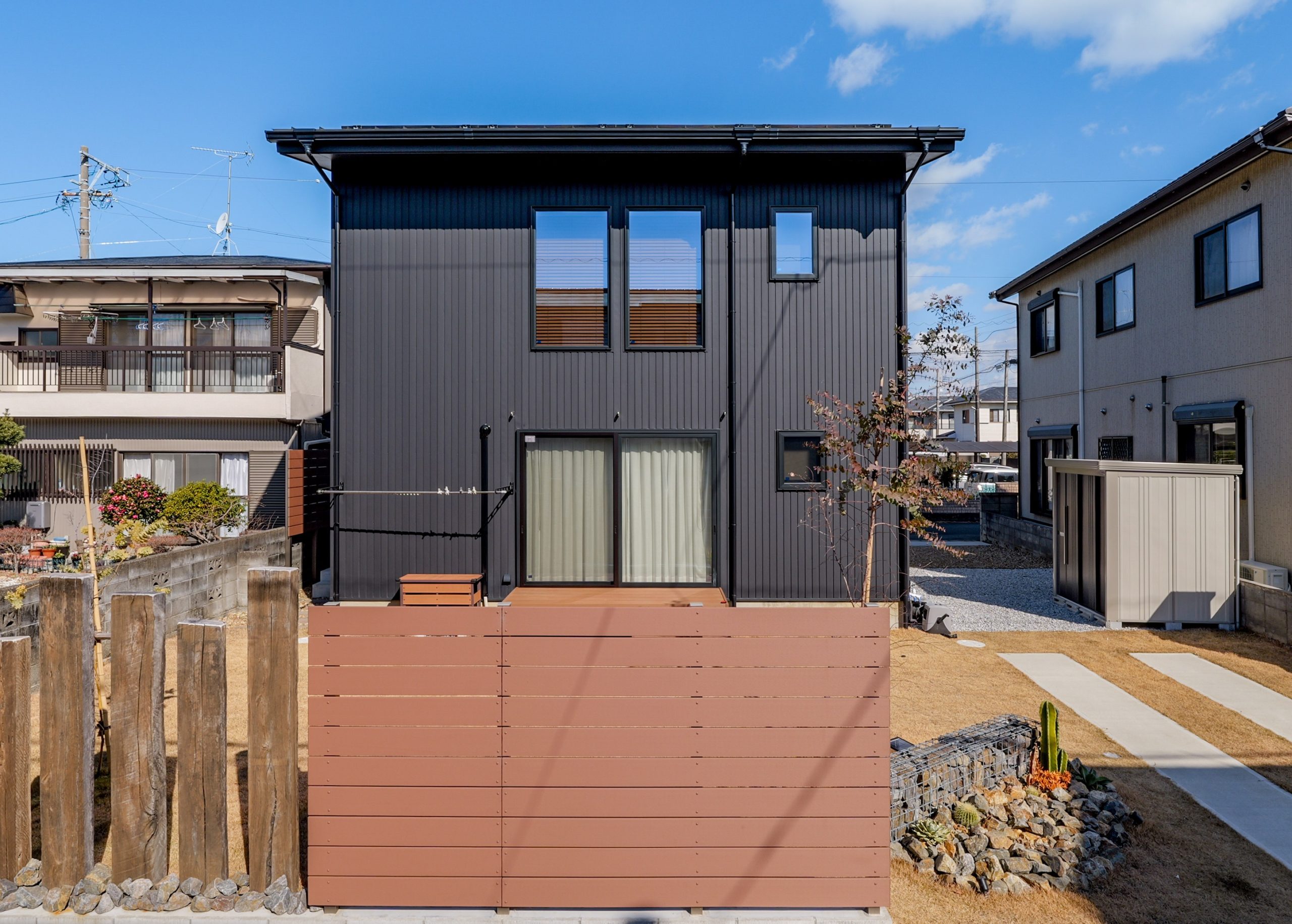 正面にアイアン飾り窓を配置し