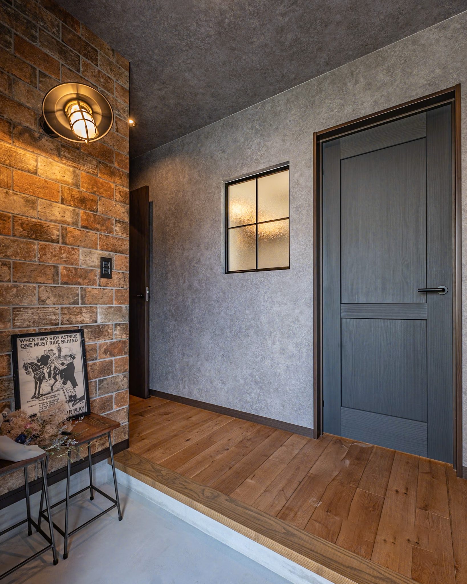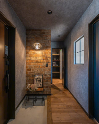 玄関を開けると脇にレンガタイル
