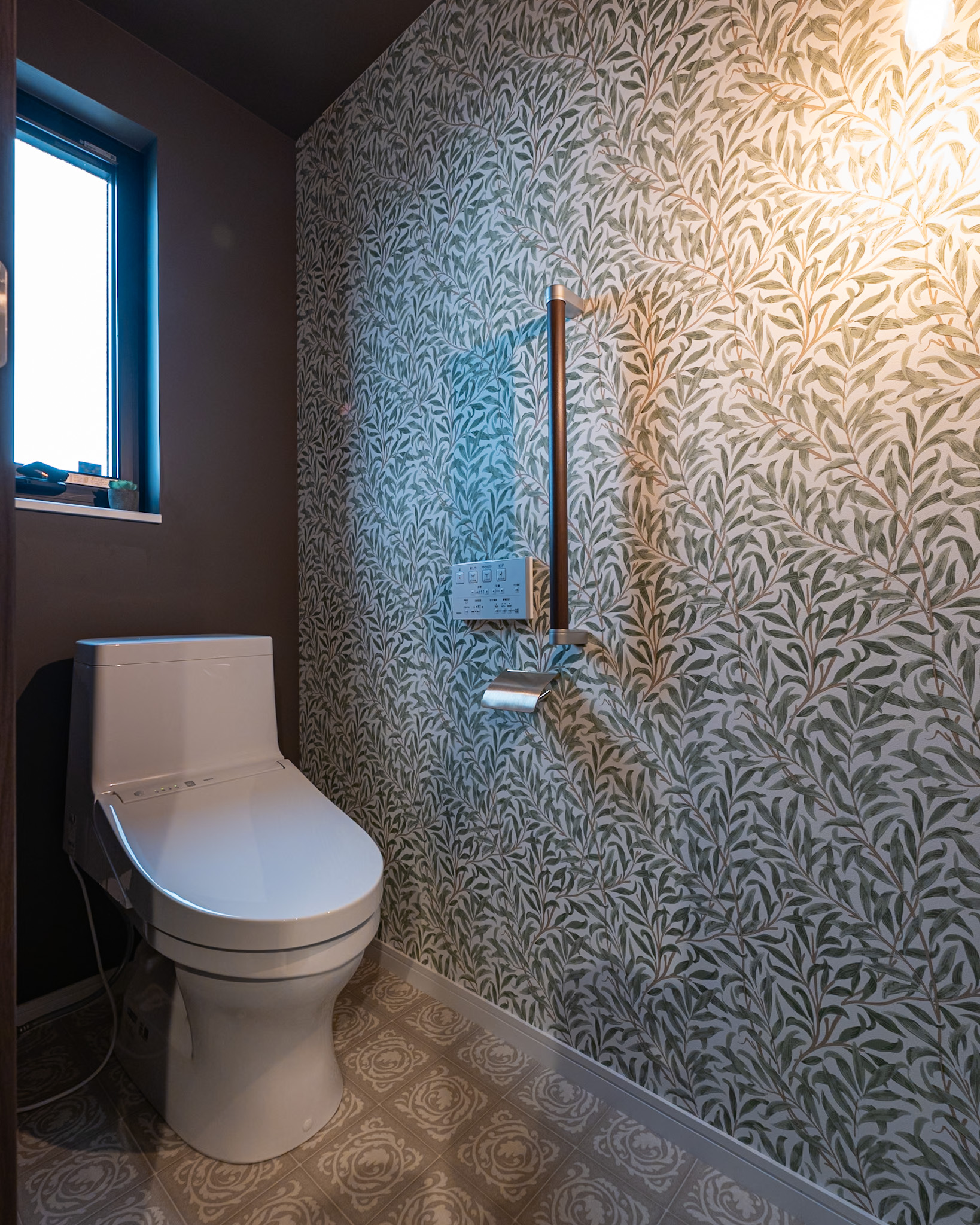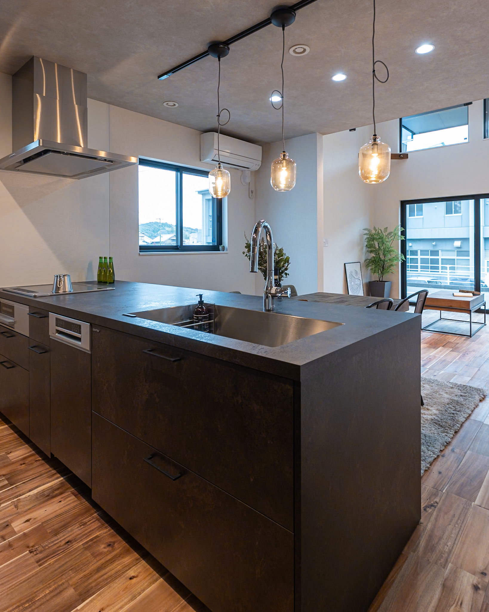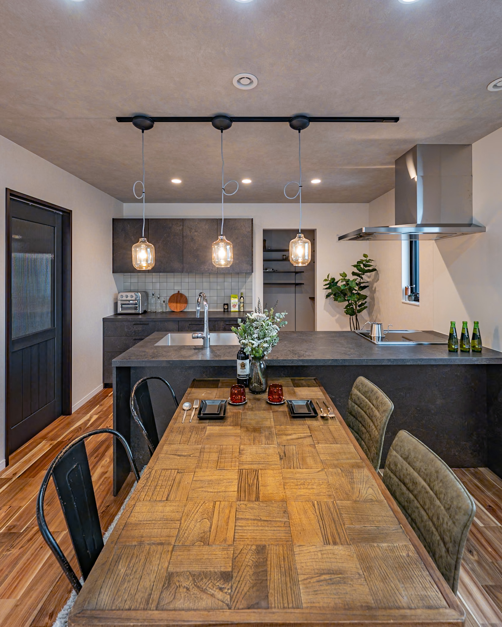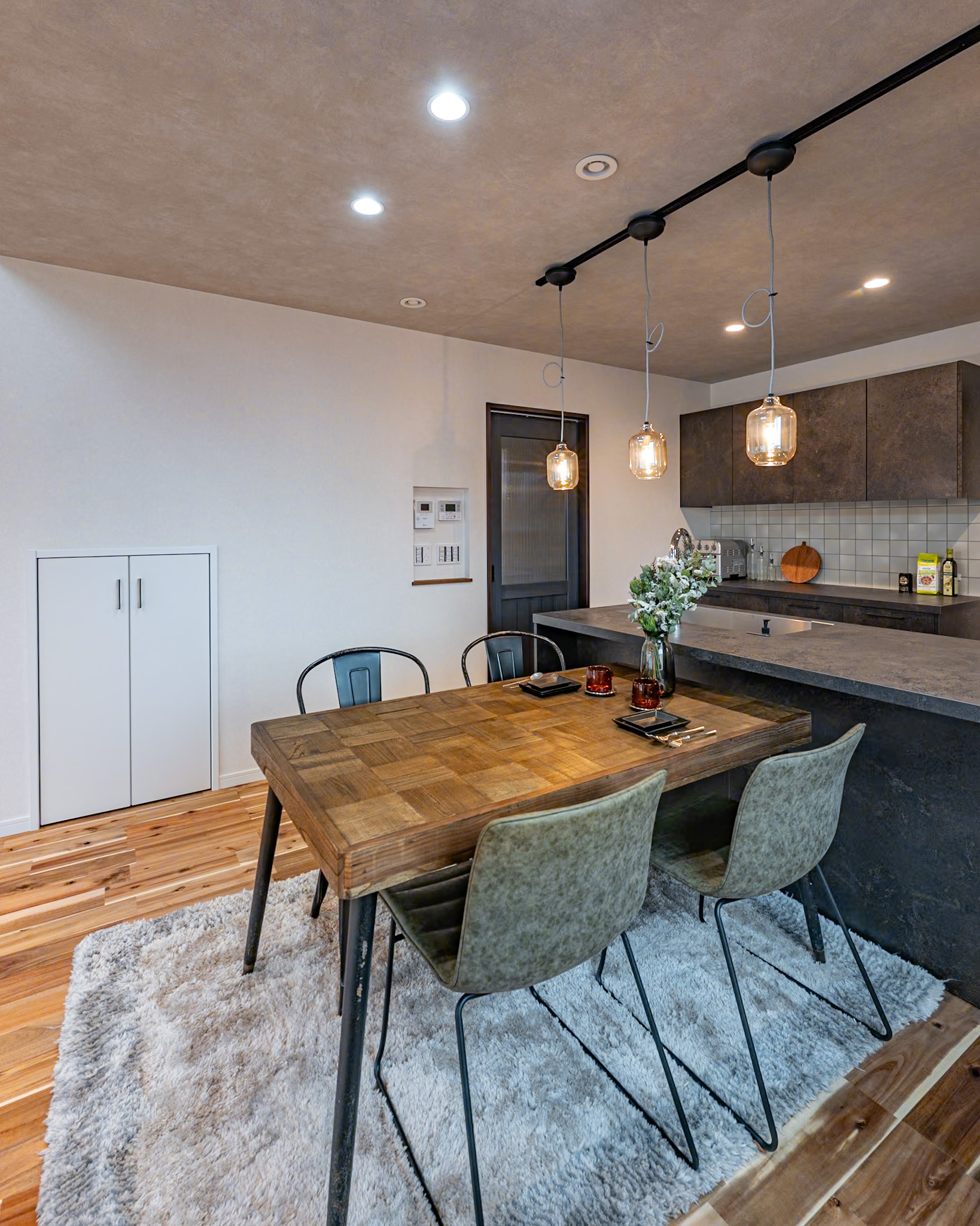 お手入れが楽なメラミンカウンターに濃グリーンタイルの造作洗面台✨