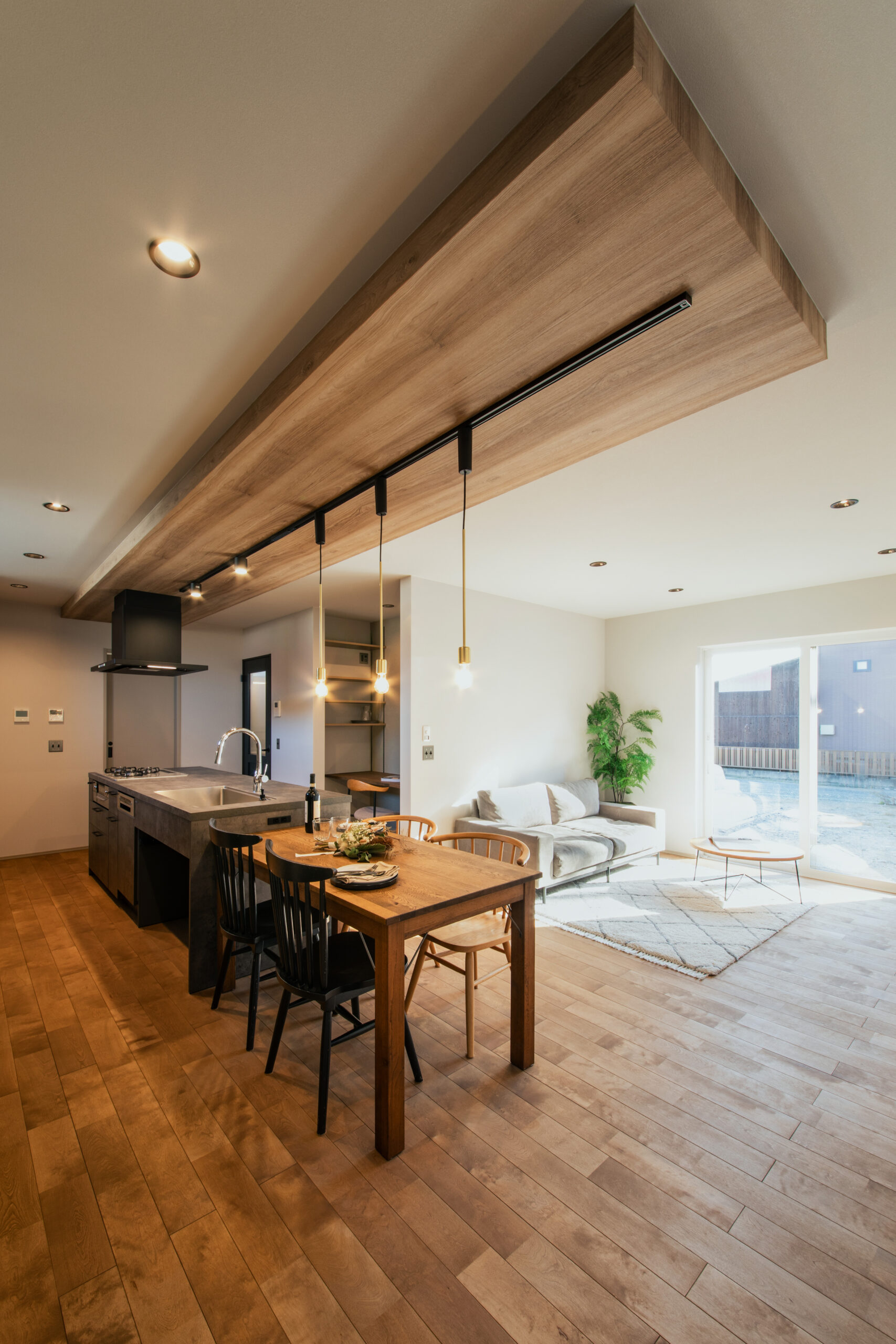 LDKに広がるのは、ウエストコーストバーチの無垢フローリング。